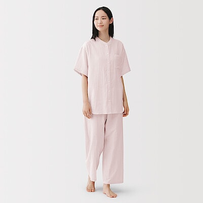 「脇に縫い目のない 薄手ガーゼ五分袖パジャマ」