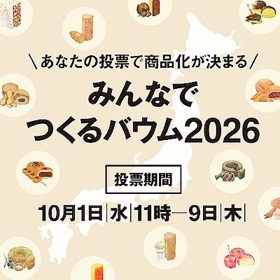 【フレスポ三次プラザ】みんなでつくるバウム2026投票実施中!『不揃いバウム』試食会のお知らせ