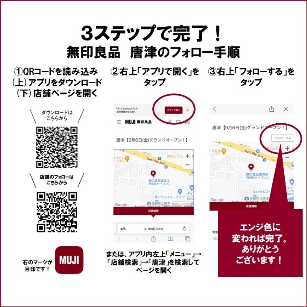 ご覧いただいているお近くの店舗に加えて、無印良品 唐津もぜひ『フォロー』していただけますと幸いです。
