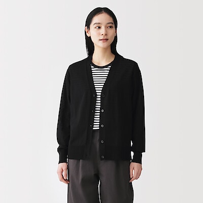 普段使いで被りがちなボーダーですがカーディガンを羽織ることで差別化することができます。