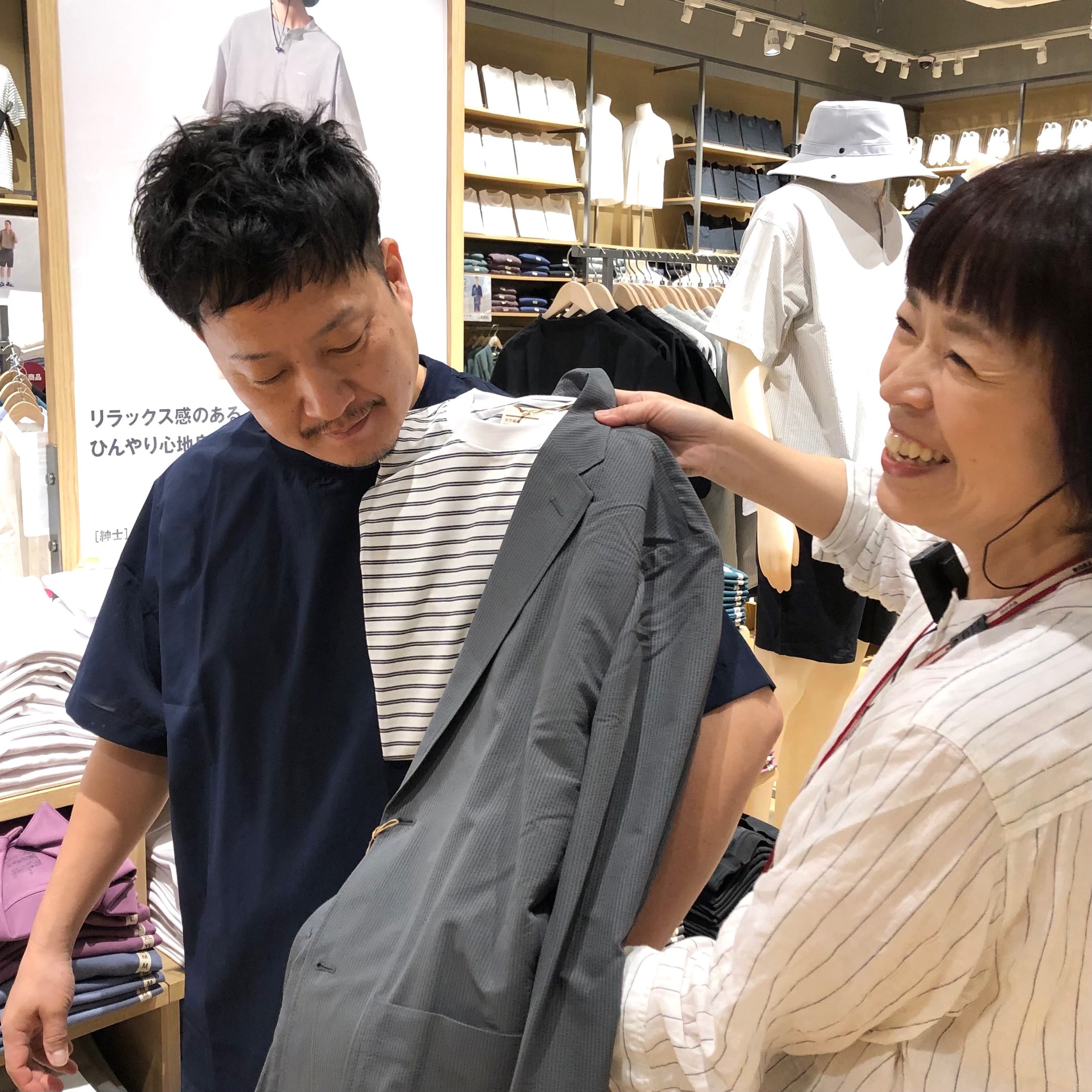 どんな洋服を買っていいかわからない、シャツとズボンの合わせ方がわからない、こんなの着たいけど似合うかな?などなど、ぜひスタッフにご相談くださいね。