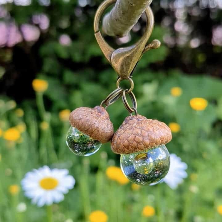 北海道のどんぐり帽子とガラスを組み合わせたキラキラかわいいどんぐりチャームやどんぐりアクセサリーを作っています。