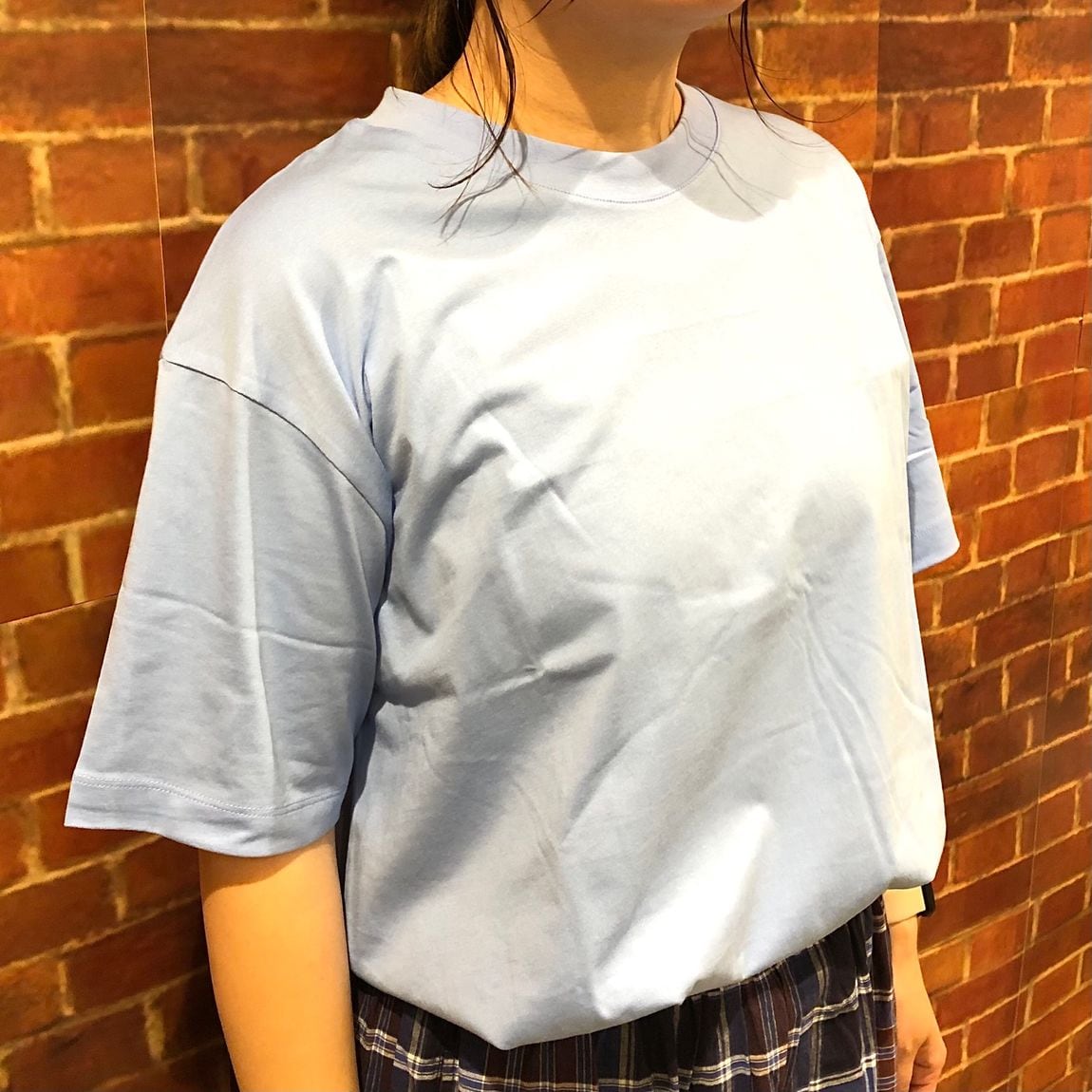カラーが豊富な天竺編みのTシャツからブルーを着用しました。 さらりとしていて何にでも合わせやすい一枚です。