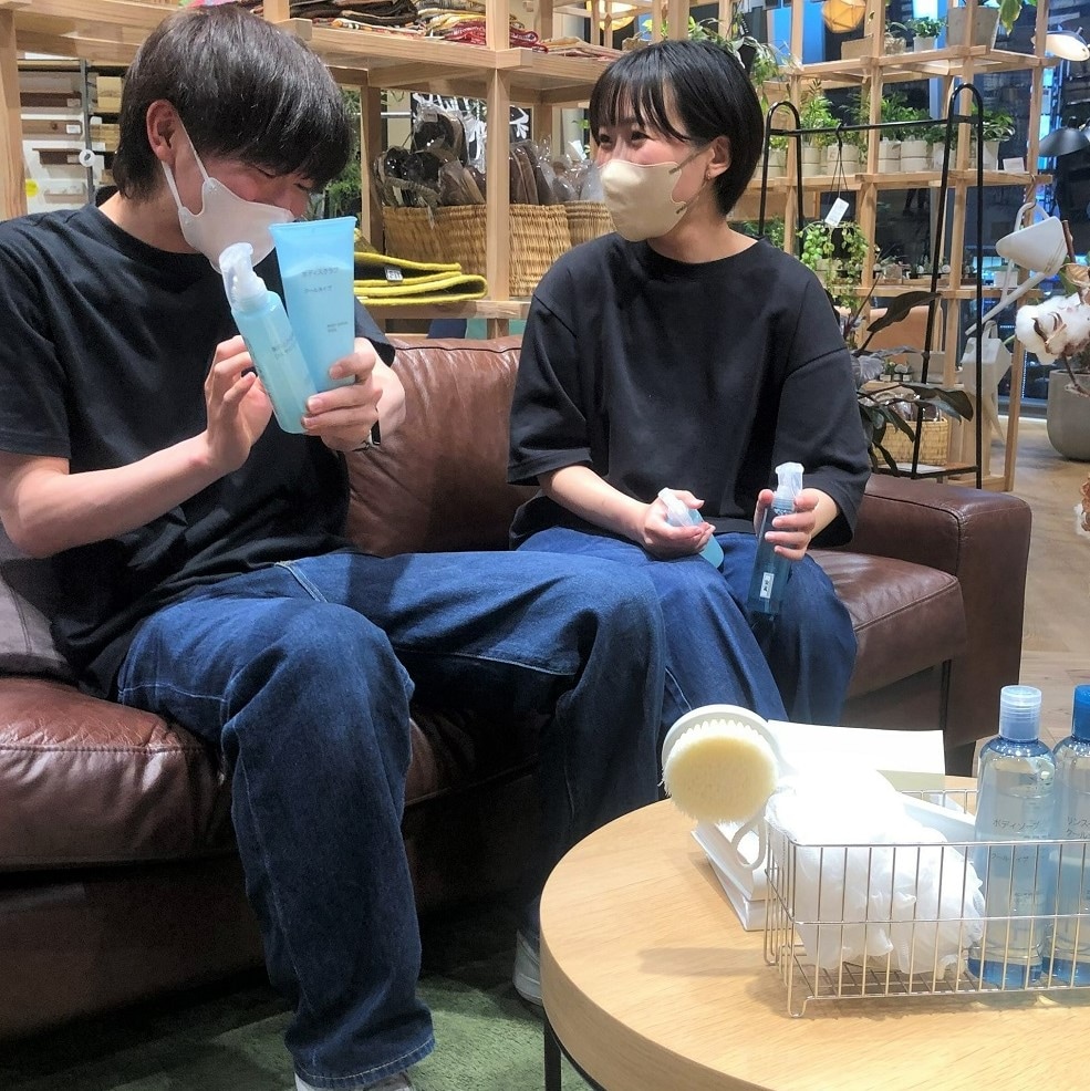『リンスインクールシャンプー』税込1290円 『ボディソープ クールタイプ』税込990円 『ボディスクラブ クールタイプ』税込1290円 『クールバスソルト』税込150円 天然由来成分100%のボディソープは、うるおい成分、清涼成分のメントールを配合したことで、 洗い上がりのお肌はしっとり、でも爽やかな涼しさを感じることのできるアイテムです。 じっとりしがちなお風呂上がりでもさっぱり過ごせますね。 クールシリーズ、いかがでしたか。 まだまだ紹介しきれていない商品も多数ございます。 これらのアイテムで暑い夏と戦っていきましょう! 店頭では、テスターをご用意している商品もございます。 直接皆様の肌で使い心地を感じていただきたいアイテムです。 是非、お立ち寄りください。 無印良品マルエイガレリア