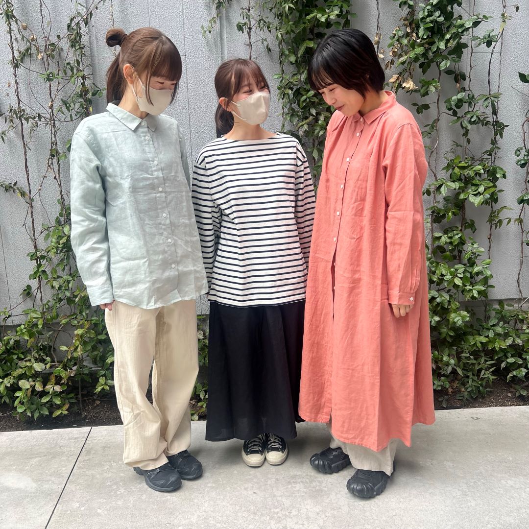 婦人 リネン 洗いざらし長袖シャツワンピース 婦人M・ピンク