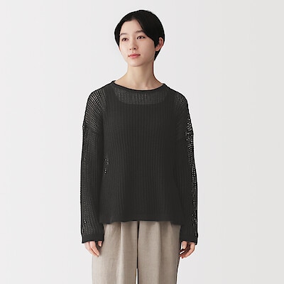 婦人 リネン混透かし編みワイドセーター 婦人S・チャコールグレー