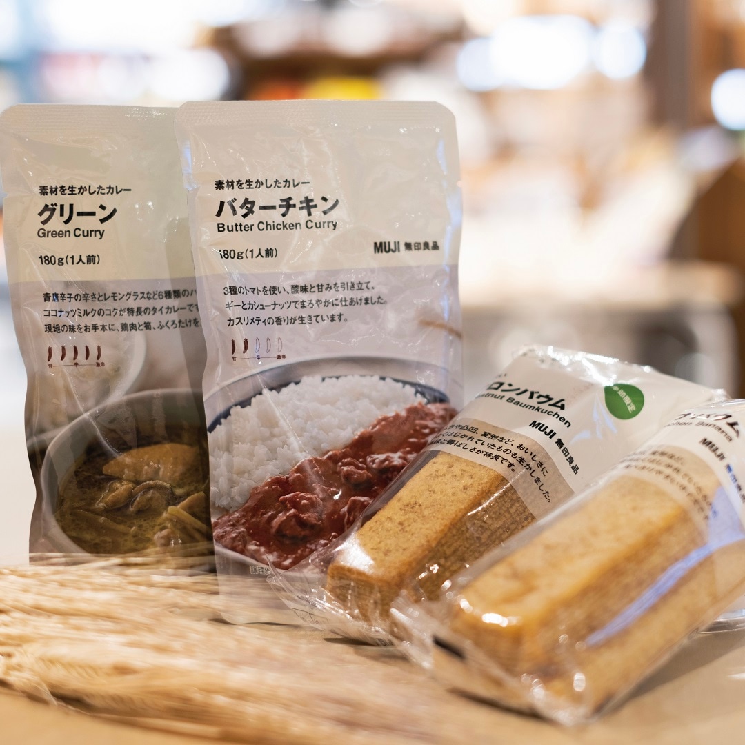 無印良品のお店で出たさまざまな素材を使ったワークショップや、人気のレトルトカレー・不揃いバウムの試食をしていただけますよ!
