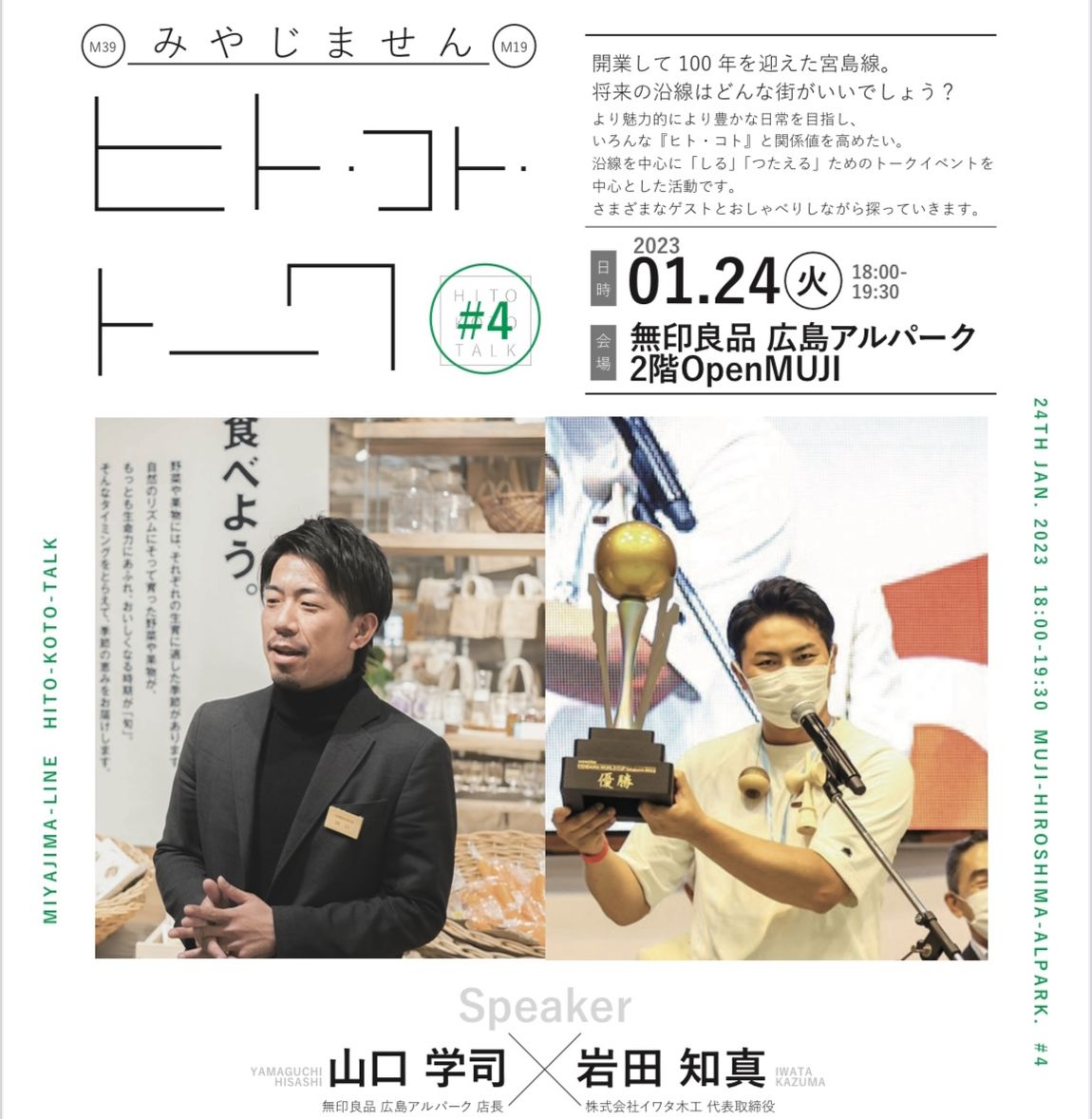 その記念のイベントとして行われているのが「みやじません ヒト・コト・トーク」で、第4回目が無印良品 広島アルパーク2階Open MUJIで行われます。
