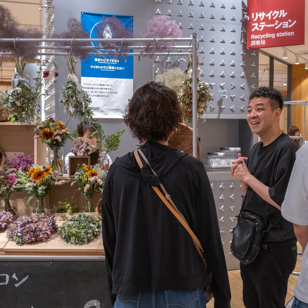 Le Fleuronさんがお持ちくださるブーケやリースは生のままはもちろん、ドライになる過程、そしてドライになってからも長く楽しめるものばかりで、常連さんもたくさんお立ち寄りくださいました。