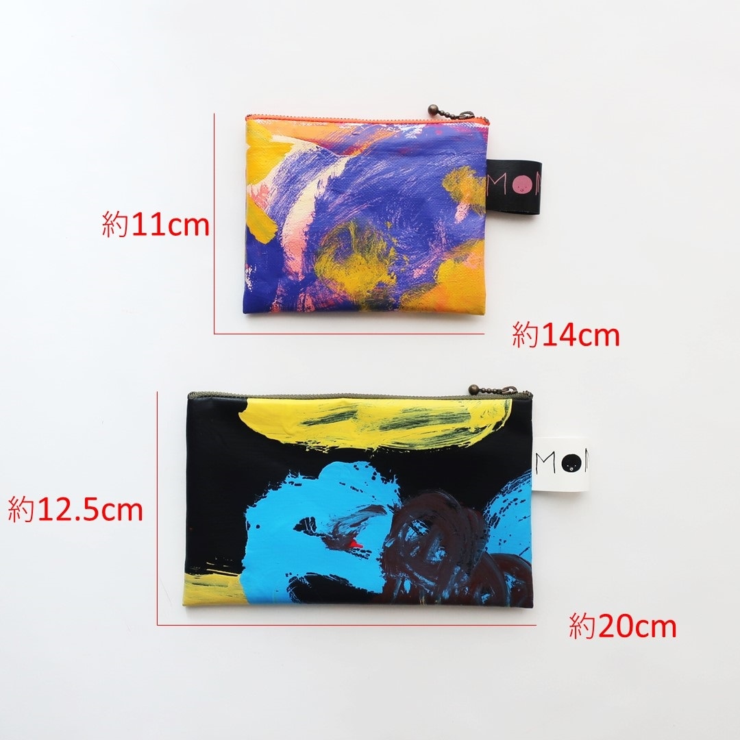 テント生地にペインティングして、ファスナーやタグを選び、オリジナルポーチを作ります。