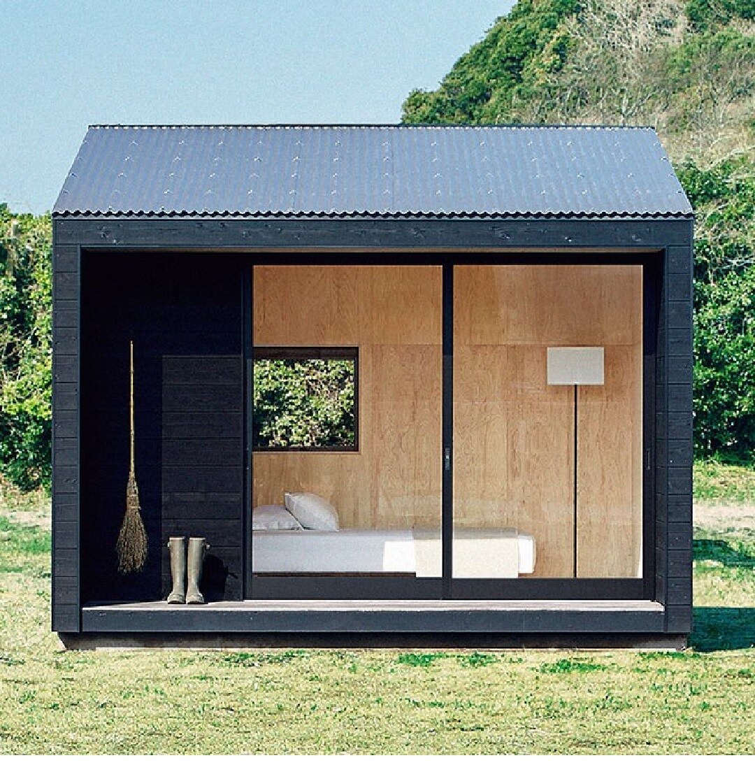 家や別荘ほど大げさではなく、旅ほど気軽でもなく。山や海、庭など、自分のすきな場所に置けばたちまちその土地の一部となり、もうひとつのくらしがはじまる。そんなイメージから生まれたまっさらな小屋です。