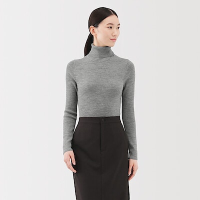 商品名: 洗えるウールハイゲージリブタートルネックセーター