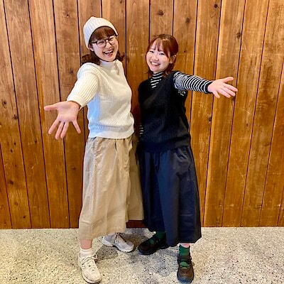 合わせるアイテムや色でイメージが変わって楽しいですね!