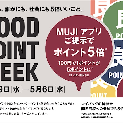 【キッピーモール三田】<予告>「GOOD POINT WEEK ―MUJIアプリでポイント5倍―」開催
