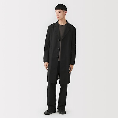 ヴィンテージの作業着コートの仕様を参考にデザインされており、製品洗いをすることで自然なシワ感を表現しています。