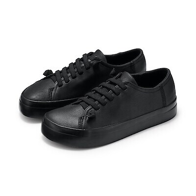 クールなオールブラックコーデに、ぽてっとしたスニーカーの形が可愛いさをプラスしています。