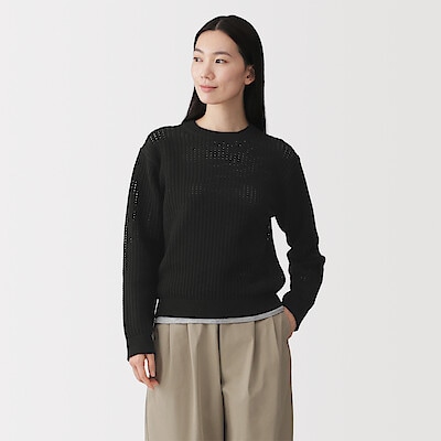 今回はメッシュクルーネックセーターを合わせて、コーディネートしてみました。
