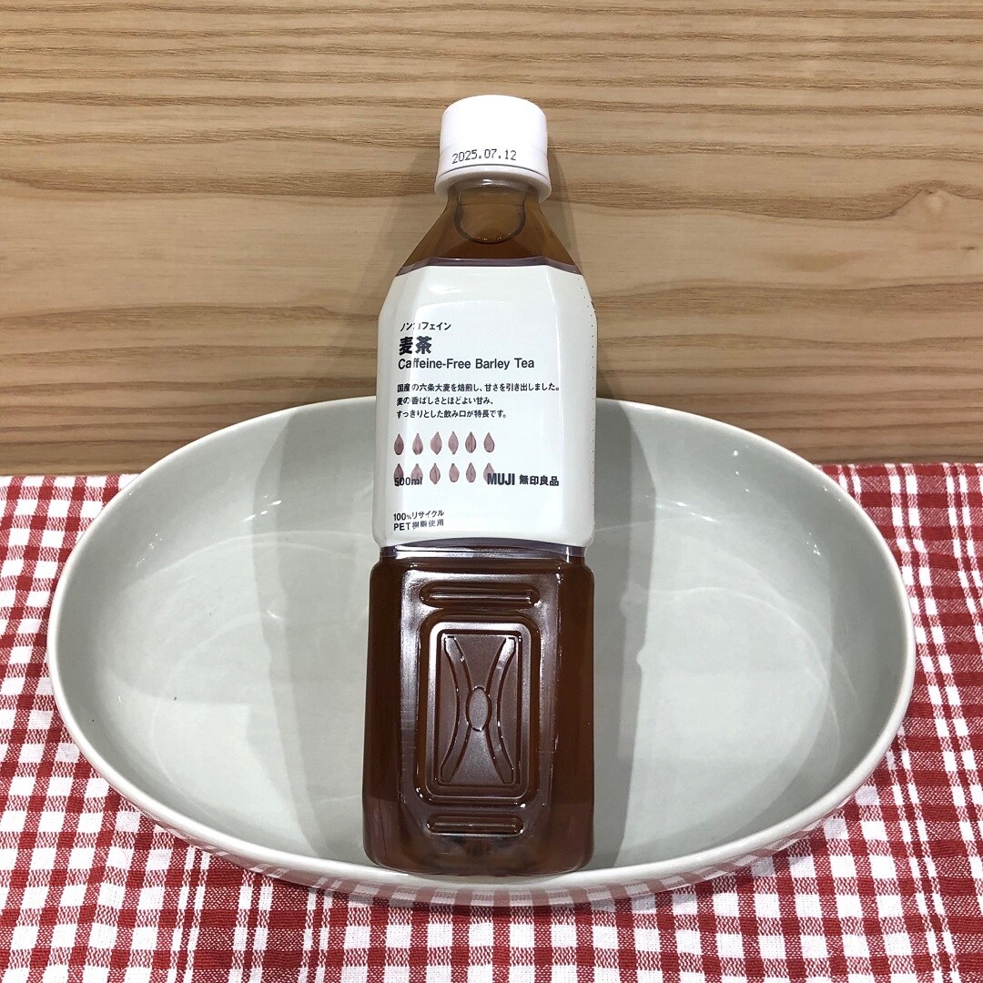 アルミ缶で販売している無糖茶を、再生原料を100%使用したPETボトル容器に変更し、