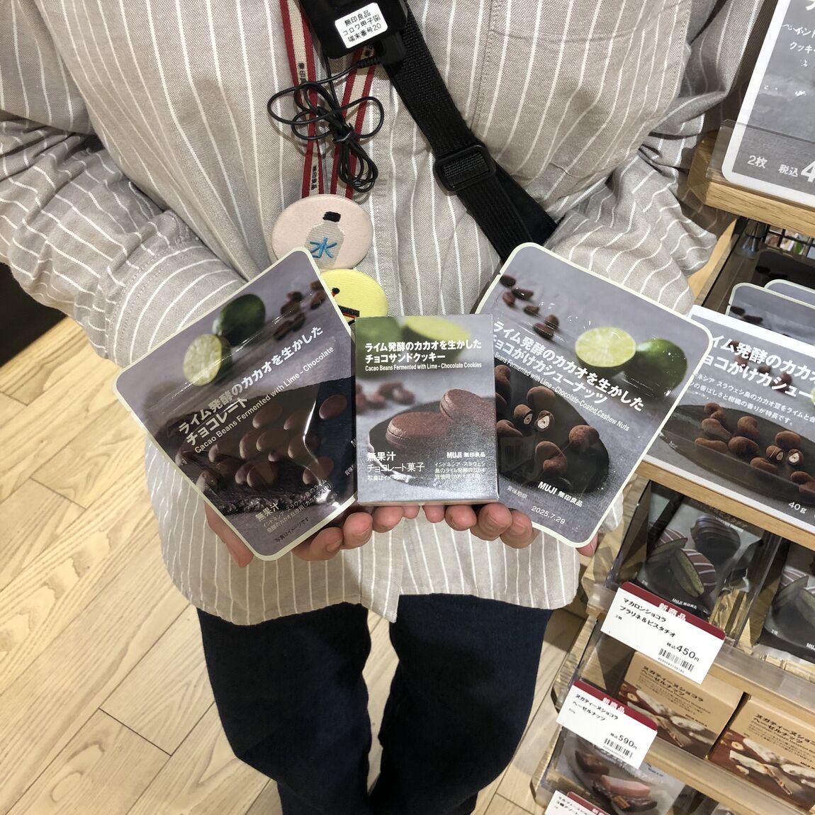 今回はライム発酵由来の味わいを生かすため、カカオの焙煎方法や配合にこだわり、ライム発酵のカカオを生かした「チョコレート」「チョコがけカシューナッツ」「チョコサンドクッキー」の3種を新たに開発しました。