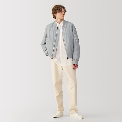 軽やかであたたかなMA-1にスウェットと裏起毛パンツ。