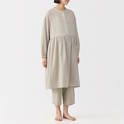 合わせたのはワンピースにみえる二重ガーゼ長袖パジャマの上。