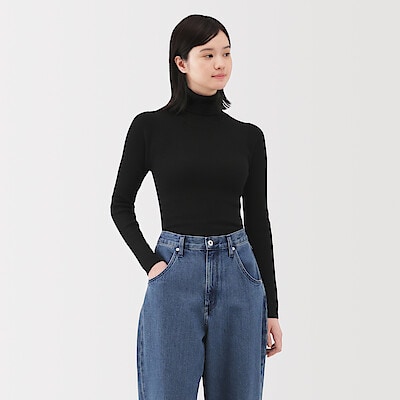 商品名:洗えるウールハイゲージリブタートルネックセーター