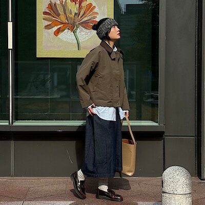 落ち着きのあるカーキ色のコートを羽織れば、頑張りすぎていないのに、ちゃんとまとまって見える大人カジュアルコーディネートになります。