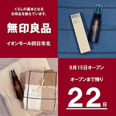【イオンモール四日市北】無印良品イオンモール四日市北オープンまで残り22日! 2023/08/24