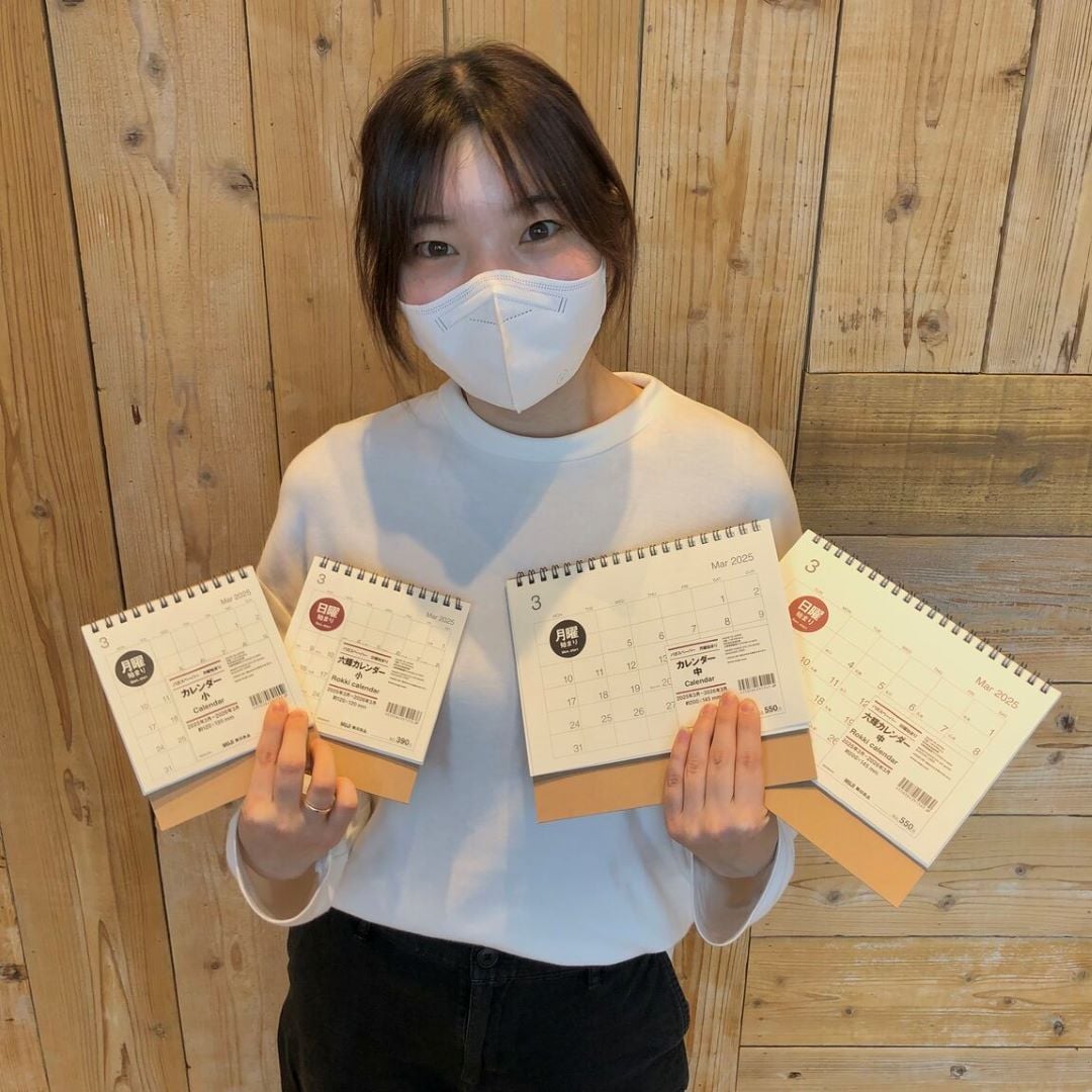 カレンダーは、サイズが小・中とあり、それぞれ日曜始まりと月曜始まりがあります。