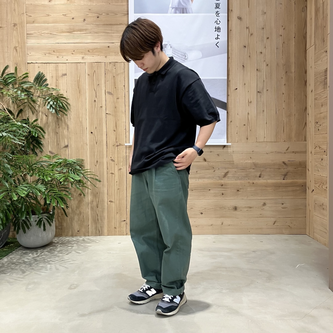 半袖ニットポロシャツのコーディネートです。