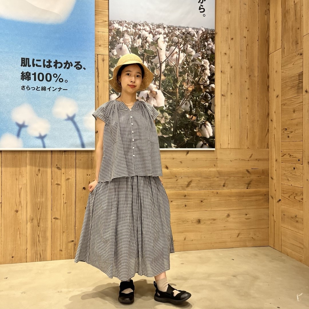 ギャザーをきかせて、ふわりとした印象の軽い着心地です。
