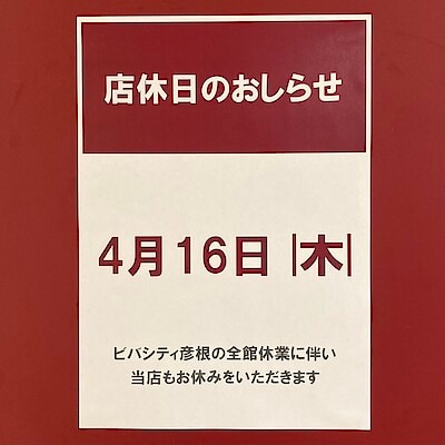 【ビバシティ彦根】定休日のお知らせ
