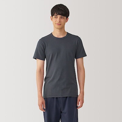紳士 あったか綿 クルーネック半袖Tシャツ 紳士L・ダークグレー