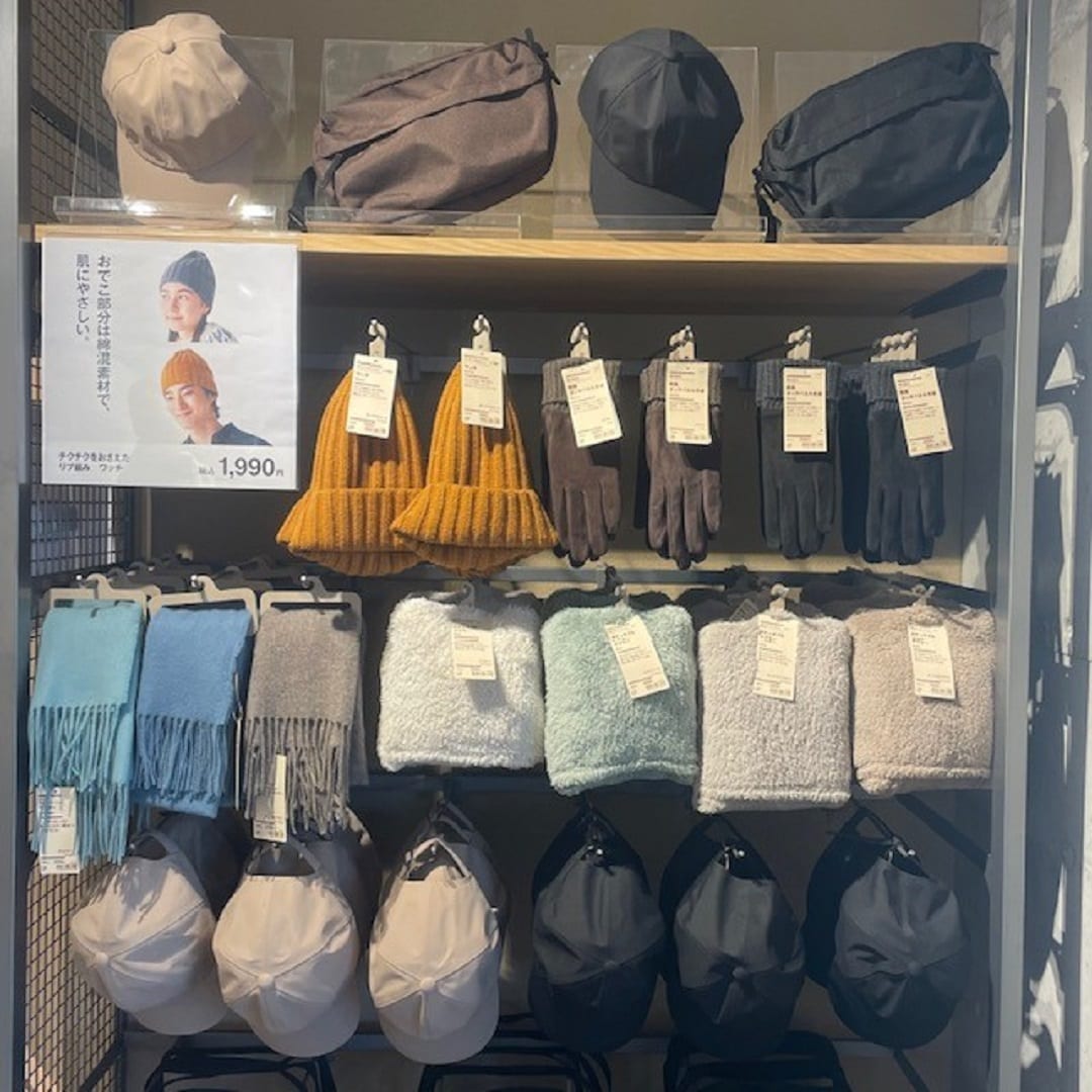 そんな時は是非、無印良品にお越しくださいませ。手袋、マフラー、帽子、様々な防寒グッズを取り揃えています。