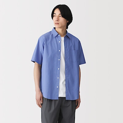 紳士 洗いざらしブロード半袖シャツ 紳士M・ブルー