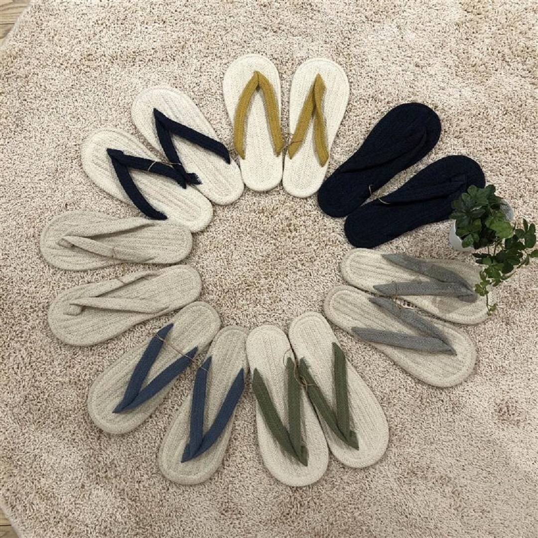 組み紐を縫い合わせ作っているのでラグの上を歩いているような履き心地です。