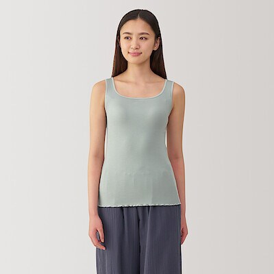 リブ地で、見せて着用しても違和感のないカップ付きインナーです。