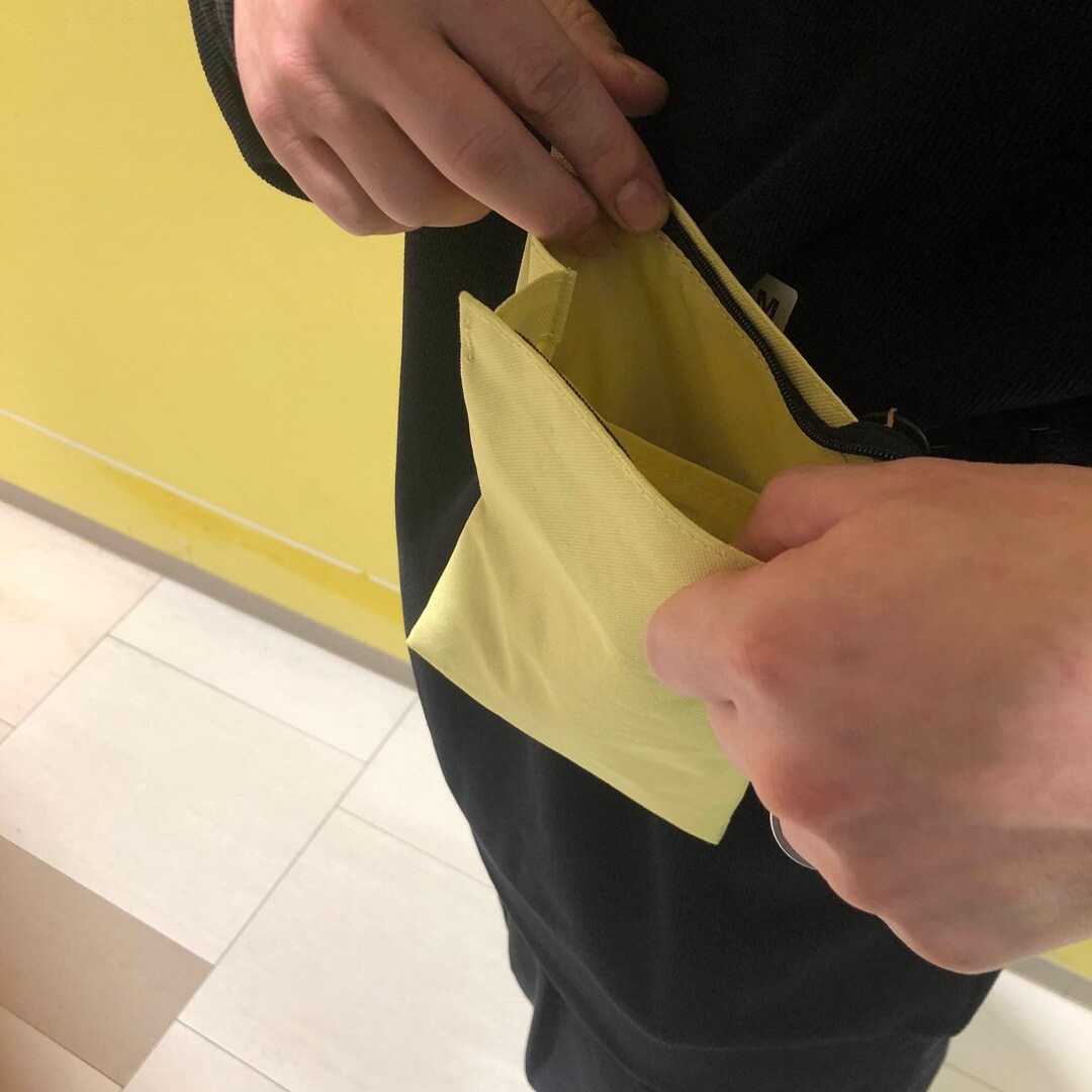 モノトーンコーデで組んでみました。差し色にライトイエローのサコッシュを選びました。