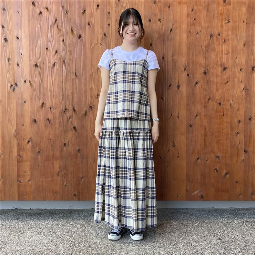 婦人 マドラスチェックフレアスカート 婦人L・アイボリーチェック