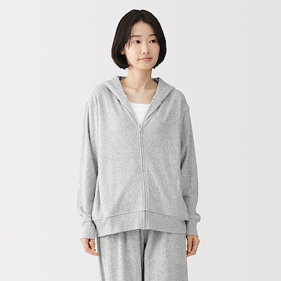 婦人 着るタオル 両面パイル 長袖ジップパーカー 婦人S・杢グレー