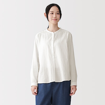 婦人 カポック混 二重ガーゼ 長袖ブラウス 婦人XL・オフ白