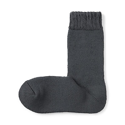 綿混素材で、ふくらはぎからつま先までパイル生地に編みたてました。肌触り良さが特長です。