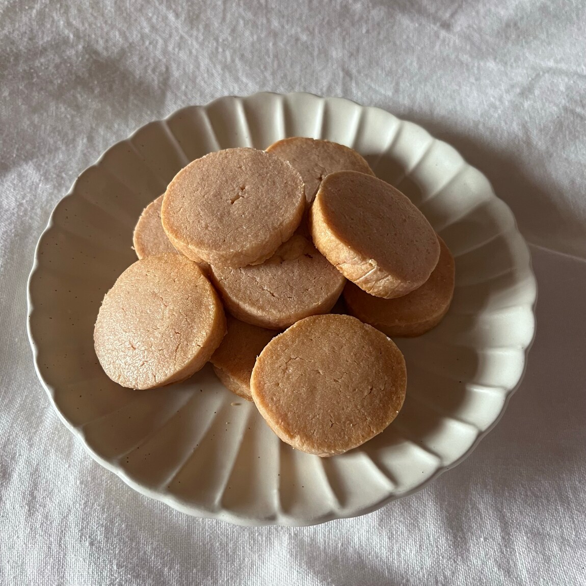 6.1.5cm程度の厚さで切り、オーブンで170℃で約15分焼く。(生地の状態を見て焼き時間を調節してください。)