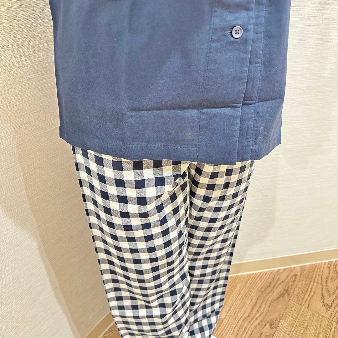 婦人 脇に縫い目のない 二重ガーゼパジャマ 婦人L・ダークネイビーチェック