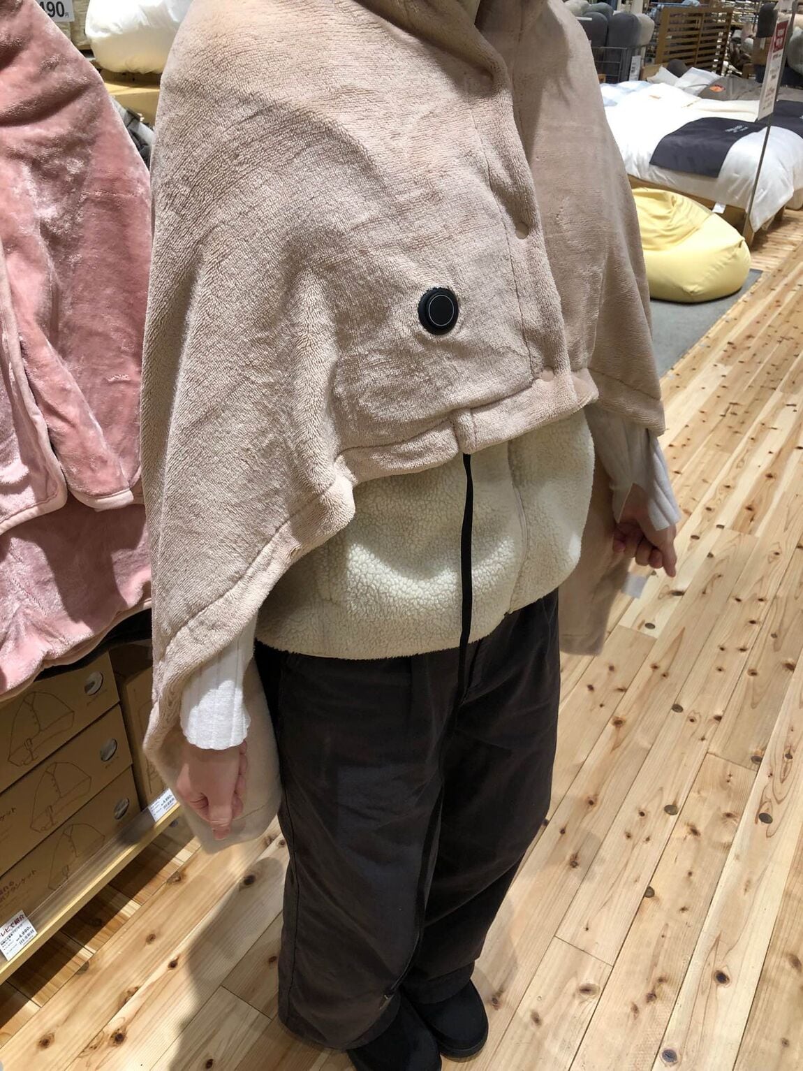 寒くて動きたくない時でもこのブランケットを羽織れば暖かさをキープしつつ作業できます。