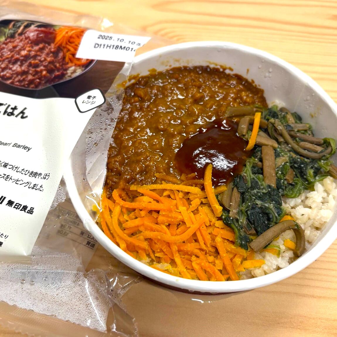 ごはんのもち麦が良いアクセントとなり、プチプチとした食感が楽しいです!