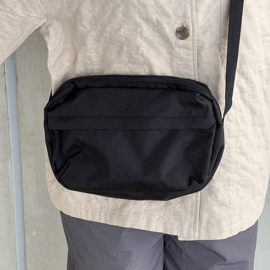 背面ポケット付き 撥水ショルダーバッグ 黒・17×28×6cm