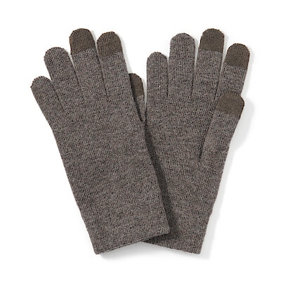 メリノウール混 裏起毛 タッチパネル手袋 フリーサイズ・ダークモカブラウン