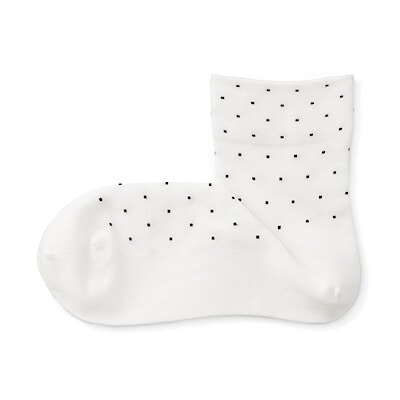 ・婦人 足なり直角 履き口やわらか ドット柄 ショート丈靴下