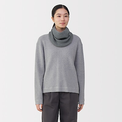 首に触れる部分に綿混素材を使用し、チクチク感を抑えました。